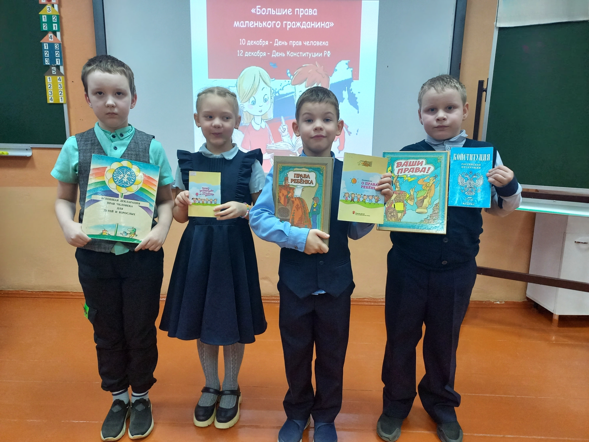 Для учащихся группы продлённого дня школы №1 прошла познавательная программа «Большие права маленького гражданина», приуроченная ко Дню Конституции Российской Федерации. Дети узнали историю создания Конституции РФ, активно участвовали в викторине, обсуждали свои права и обязанности, анализируя примеры из известных мультфильмов, познакомились с тематическими книгами.