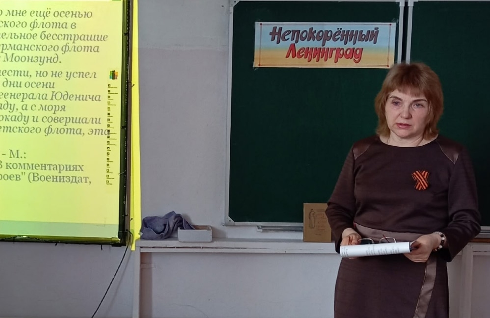 27 января в День воинской Славы России - полного освобождения города Ленинграда от фашистской блокады - сотрудник Летнереченской сельской библиотеки Вера Григорьевна Иванова провела час мужества «Бессмертный подвиг ленинградцев» для учащихся 7 и 8 класса (учитель истории Елена Ивановна Плашенкова).