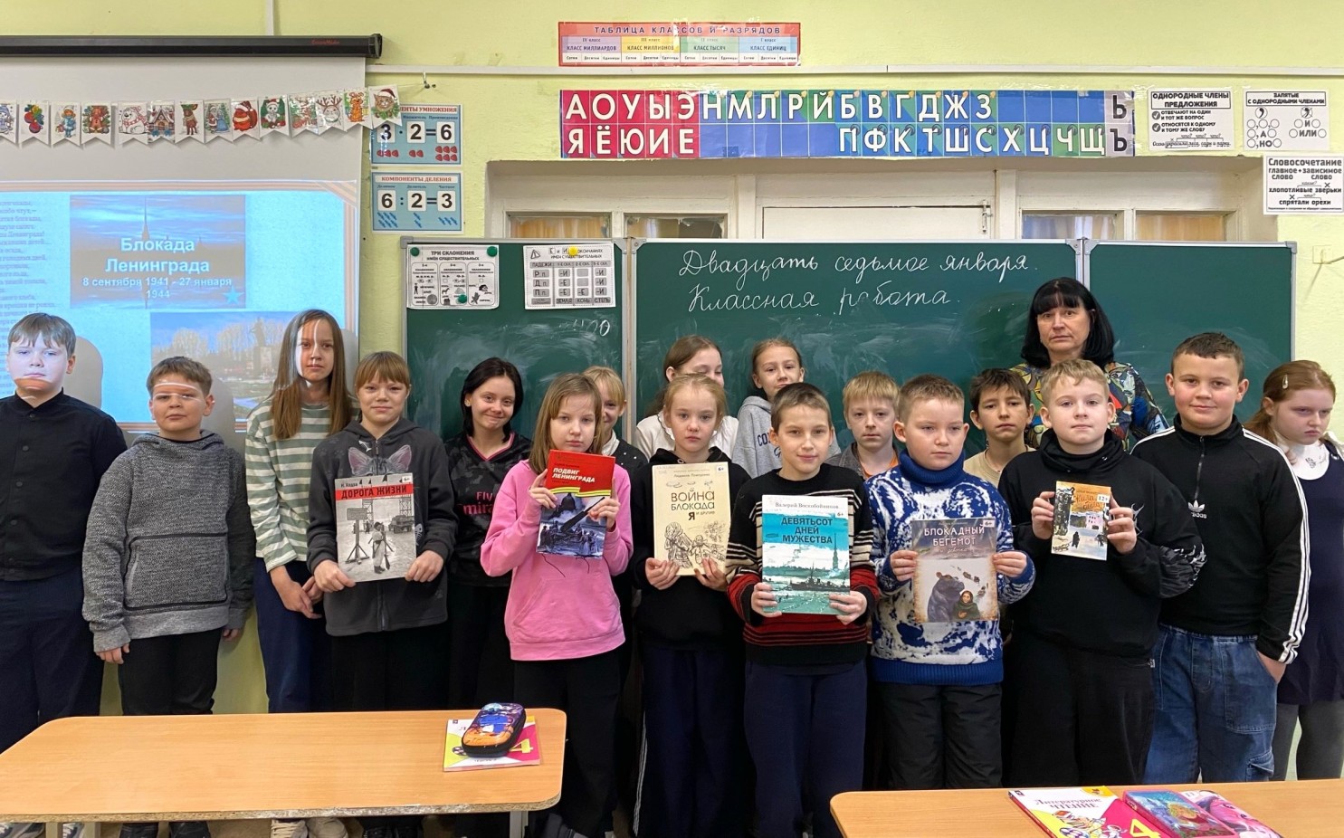 27 января отмечается День полного освобождения Ленинграда от фашистской блокады, эта дата - День воинской славы России. В честь памятной даты с целью воспитания патриотизма, чувства гордости за свою страну и за свой народ, для детей детского сада «Родничок» (старшая группа - воспитатель Конышева О.А., в подготовительных группах - воспитатели Полузерова О.М., Скуридина О.В., в средней группе - воспитатель Булайчик Е.Н.) и учащихся школы №3 (1«А» класс - учитель Елагина Е.В., 3«А» класс - учитель Сидорова А.Г., 3 «Б» класс - учитель Юплова И.А., 3«В» класс - учитель Невис Ю.А., 4 «А» класс - учитель Клишина Е.Е.) прошли различные мероприятия.