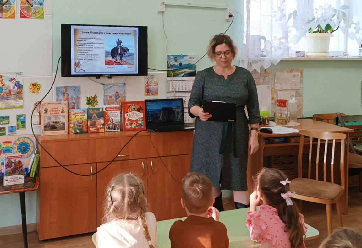 Для воспитанников подготовительной группы «Звездочка» детского сада «Родничок» прошел литературный час «Богатыри земли русской». Он являлся продолжением большого проекта о русских богатырях, который реализуется в группе «Звездочка» под руководством воспитателя Татьяны Владимировны Емельяновой.