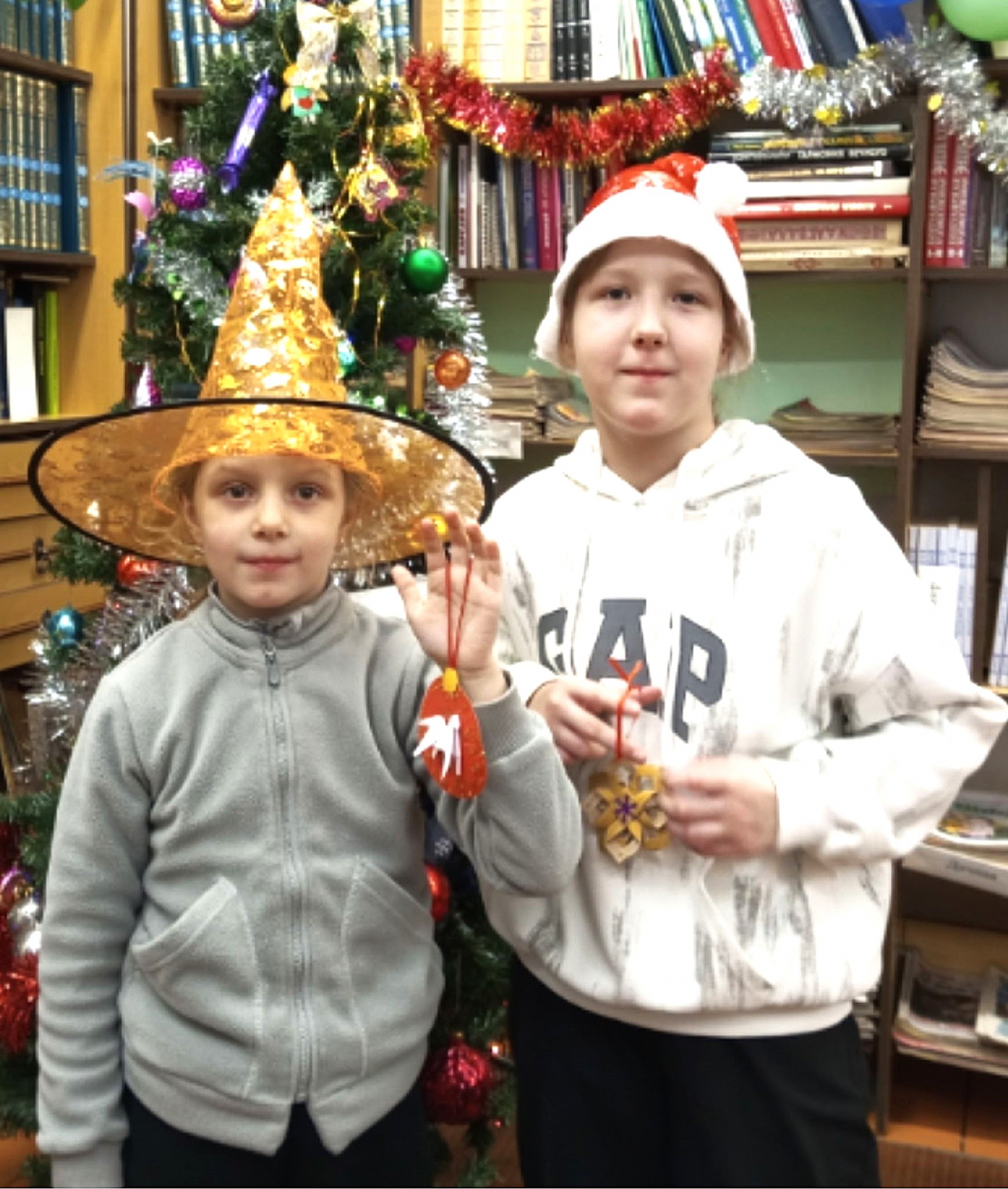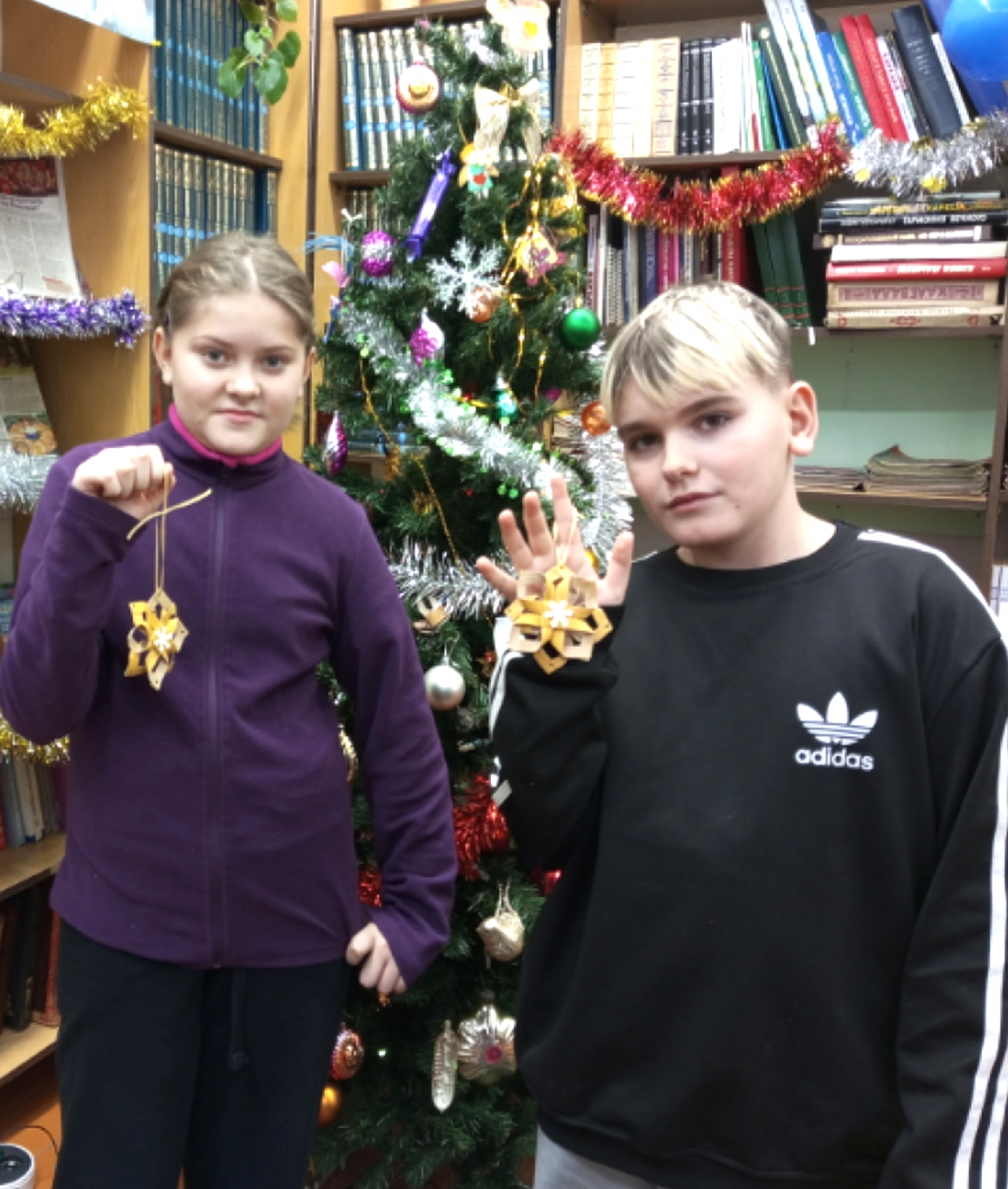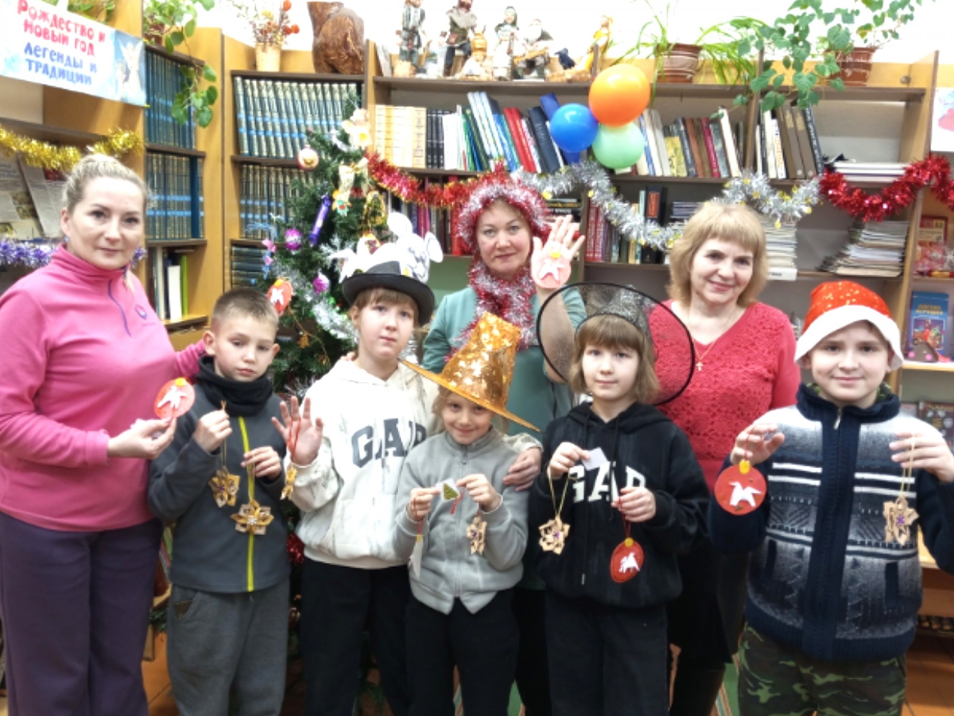 Днем ребята из студии «БиблиоАрт» помогали библиотекарю украшать библиотечную ёлочку. Большой интерес вызвали игрушки, сделанные в разные годы нашими читателями. И, конечно, юным артистам захотелось самим изготовить игрушку. В этом году библиотечная ёлочка засияла по-новому, ведь под ней стоят Дедушка Мороз и Снегурочка. Благодарим кукольницу-рукодельницу Ольгу Рафаиловну Долганову за прекрасный подарок!