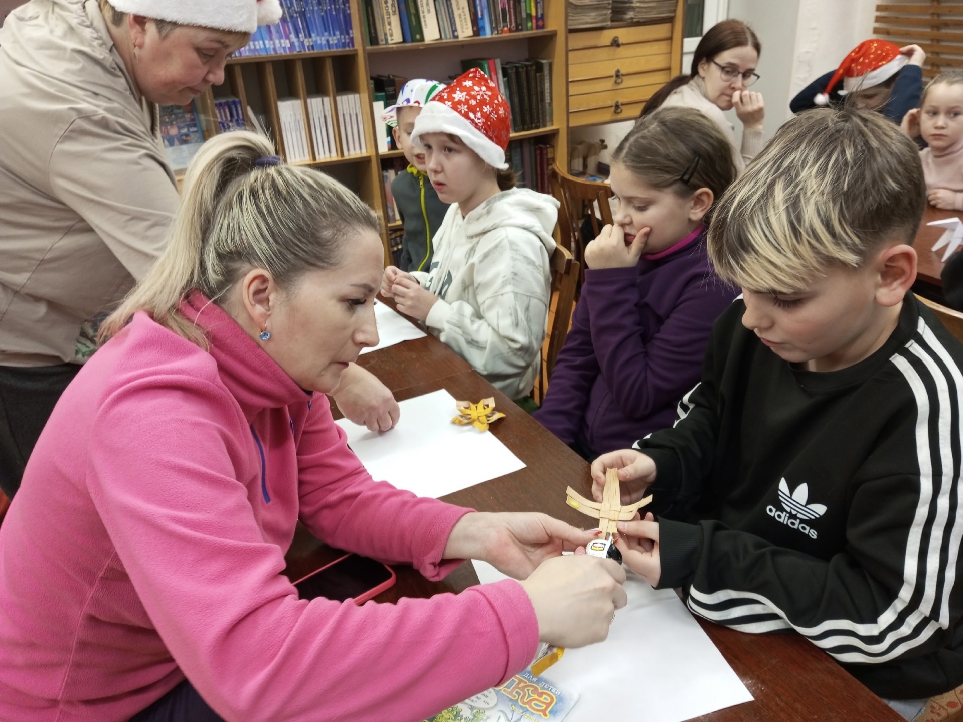 Оксана Владимировна научила участников мастер-класса делать игрушку из цветной бумаги – «шарик» с объемной аппликацией «лошадка». Вместе с Татьяной Игоревной рукодельники изготовили «рождественскую звезду» из бересты, украсили ее нежными снежинками. Во время работы царила теплая, дружеская атмосфера, ребята помогали друг другу. От души благодарим педагогов, ведь совместное творчество помогло участникам мастер-класса почувствовать приближение чудесного праздника.