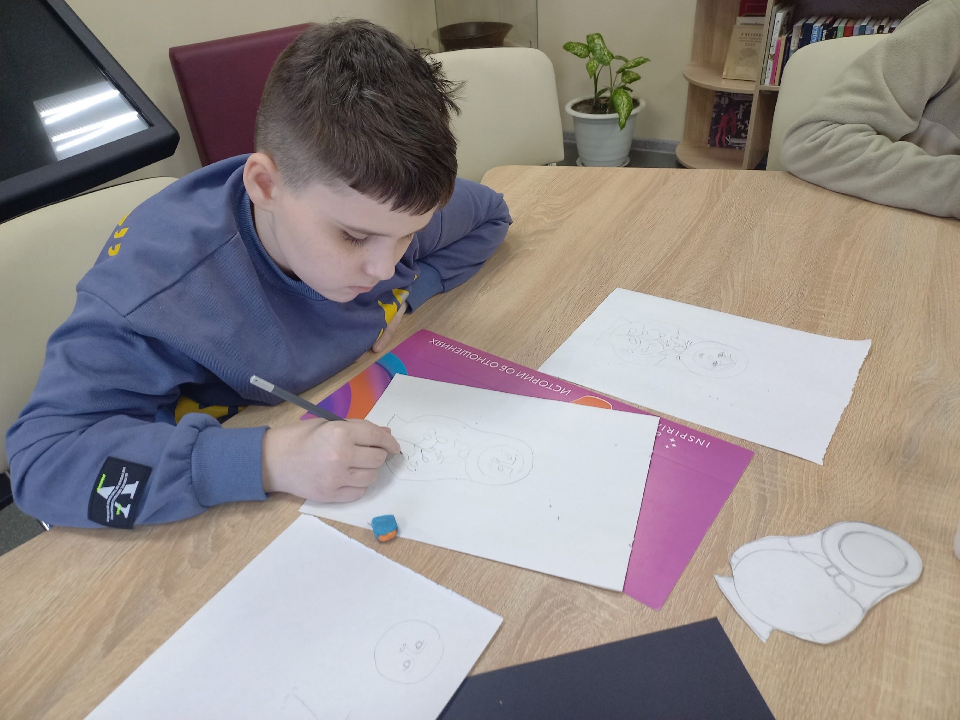 Матрешка — это не просто деревянная расписная кукла, а один из главных неофициальных символов России. Она появилась в конце XIX века, воплотив идеи и орнаменты популярного тогда «русского стиля». Под чутким руководством Елены Калабалиной, Члена Союза Русских Художников, участники мастер-класса расписывали матрёшку и кропотливо вырисовывали узоры на ее фартуке. На собственном опыте ребята убедились, насколько это трудная, но в то же время увлекательная работа — быть художником. Все получили массу положительных эмоций и ценные советы по рисованию. Большое спасибо Елене Александровне за проведенный мастер-класс!