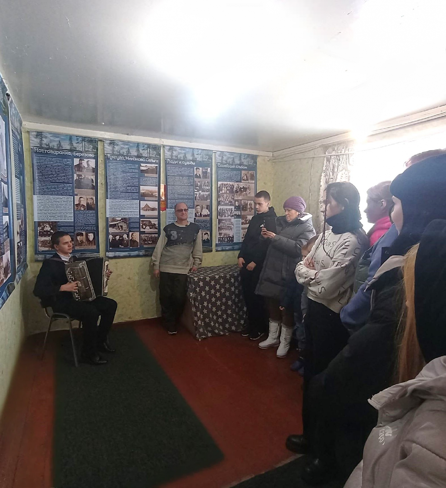 В выставочном зале, при музыкальном сопровождении, гостей библиотеки встречал учащийся отделения общего музыкального образования Детской школы искусств имени А.Ю. Бесолова Александр Няттиев (преподаватель С.В. Петунов). Учителя, обучающиеся и жители посёлка смогли оценить яркую информационную выставку, которая произвела на них сильное эмоциональное впечатление. На баннерах присутствующие смогли увидеть не только интересную историческую информацию о Тунгудском районе, но и своих давних друзей, которые проживают в д. Тунгуда.