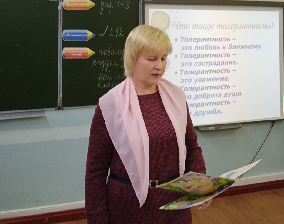 Библиотекарь рассказала ребятам, что у каждого человека свой характер, свои интересы, привычки, религия и культура. И, чтобы жить в мире и согласии, все должны дружить и уважать друг друга, быть добрыми и заботиться о ближнем. Дети узнали, какими качествами характера обладает толерантный человек, что значит быть толерантным. Также школьники прослушали отрывки из сказок Х.К. Андерсена «Дюймовочка», «Гадкий утенок» и стихотворение А.Л. Барто «Два снежка» и обсудили поступки главных героев.